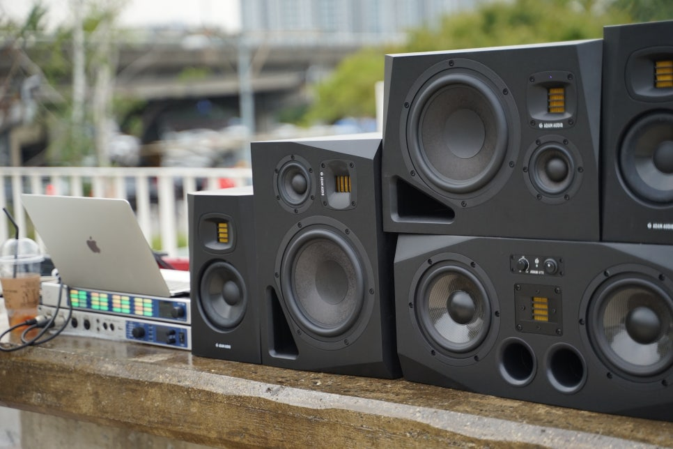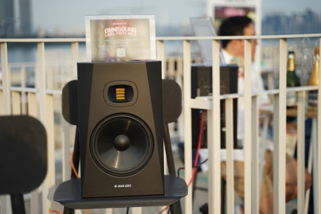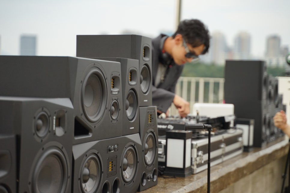 디제이 부스가 있는 메인 공간에는 ADAM의 모니터 스피커들을 빼곡하게 배치하였습니다. 사실 ADAM의 모니터링 스피커는 주로 실내에 사용되는 스피커이지만 아주 큰 공연장이 아닌 루프탑 정도의 사이즈는 어느 정도 커버 가능하여 번외로 야외에서도 어느 정도 사용은 가능합니다.