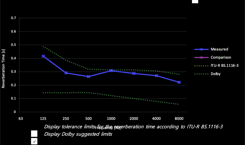* RT60 (잔향 시간) — 실내 음의 잔향 시간이 균일하게 유지되는가