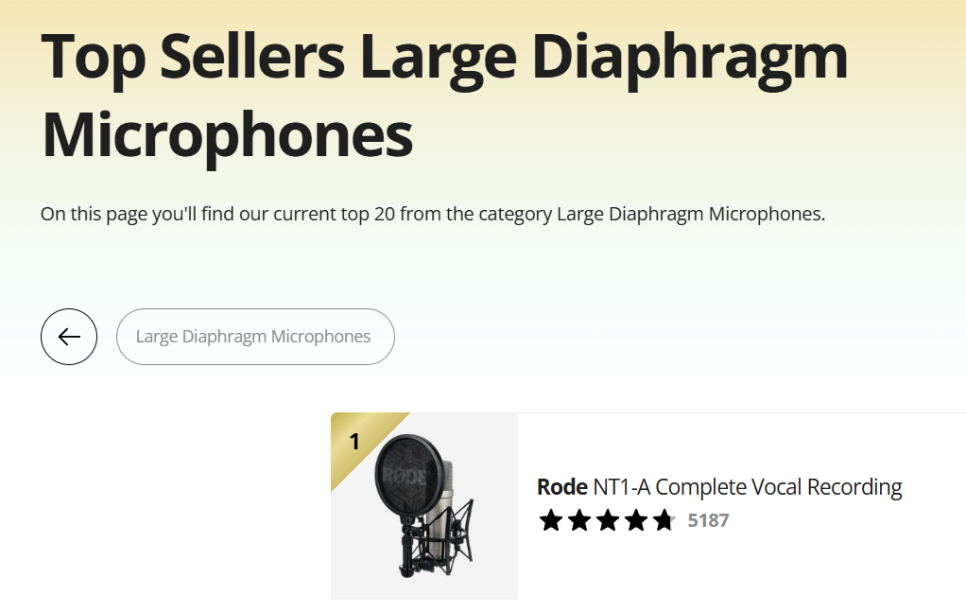 전유럽 음향기기 사이트 1위 Thomann에서 라지 다이어프램 마이크 판매 1위