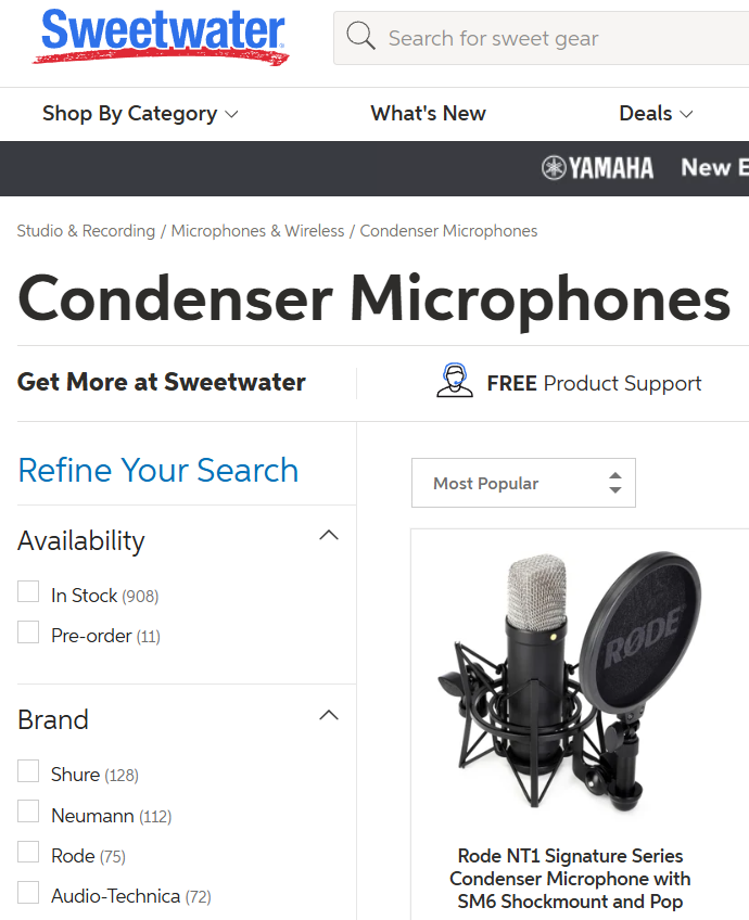 북미 음향기기 사이트 1위 Sweetwater에서 콘덴서 마이크 1위