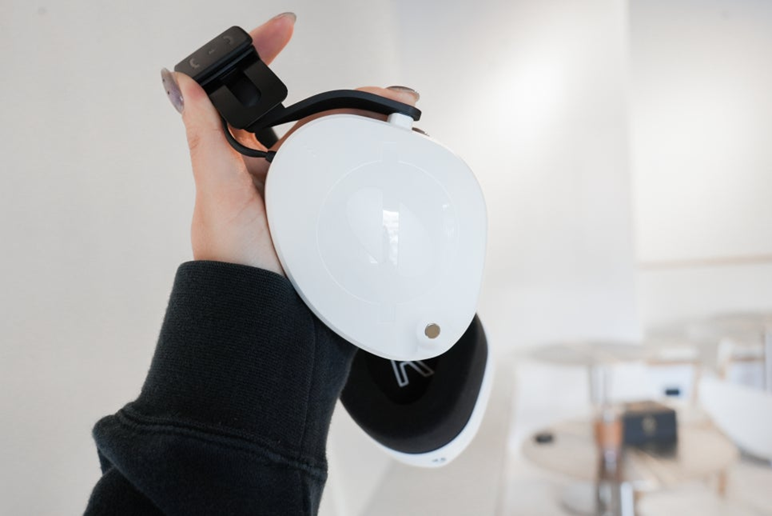 사람의 귀 모양을 본뜬 독특한 삼각형 형태의 이어컵은 귀를 완전히 덮어주는 '어라운드 이어' 스타일입니다. 덕분에 차음성이 뛰어나면서도 압박감이 적어 안경을 쓴 상태에서도 큰 불편함이 없었습니다.