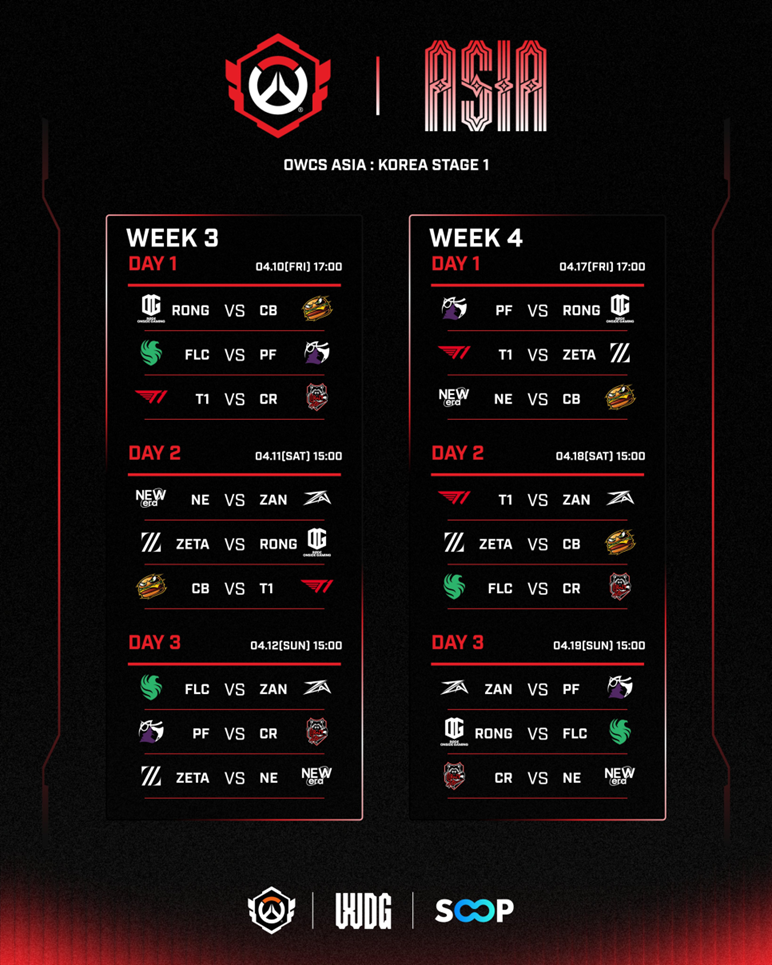 [ETC] RØDE ONSIDE GAMING OWCS KOREA STAGE 1 경기 일정표