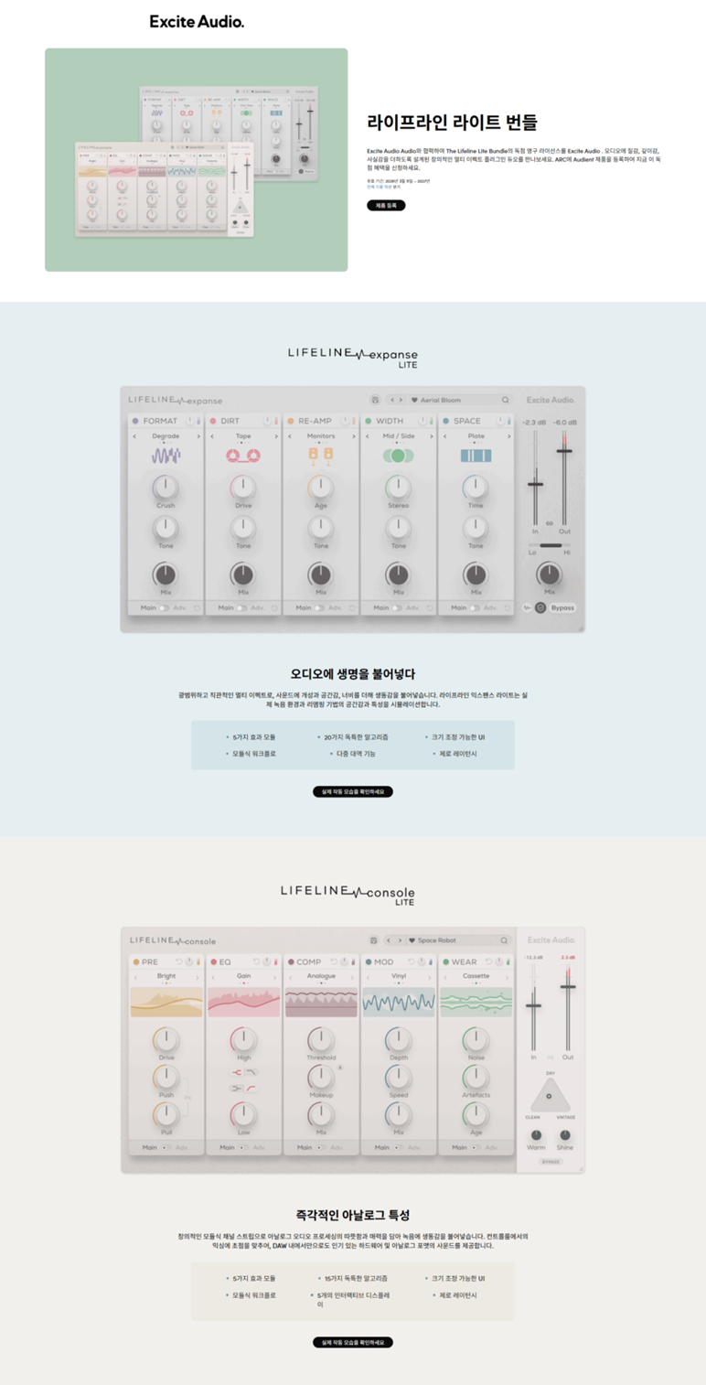 공식 ARC 페이지에는 해당 번들이 The Lifeline Lite Bundle로 표기되어 있으며, 이 번들은 Lifeline Expanse Lite와 Lifeline Console Lite 두 가지 멀티 이펙트 플러그인으로 구성되어 있습니다.