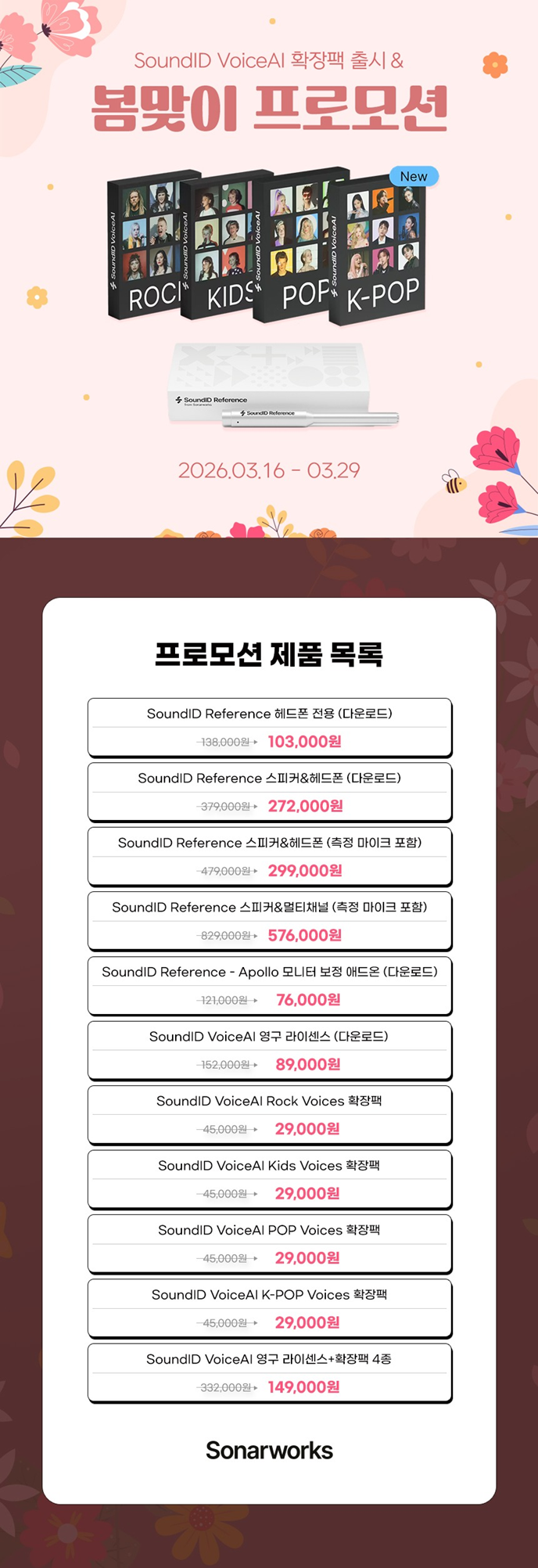 [Sonarworks] [공지] [신제품+프로모션] SoundID VoiceAI 신규 확장팩 K-pop Voices·Pop Voices 출시, 3월 봄 프로모션 진행