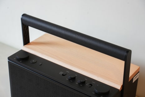 또한 이동형 스피커인 만큼 다양한 환경에서 사용할 수 있도록 안정적인 지지 구조로 설계된 점도 확인할 수 있습니다.
