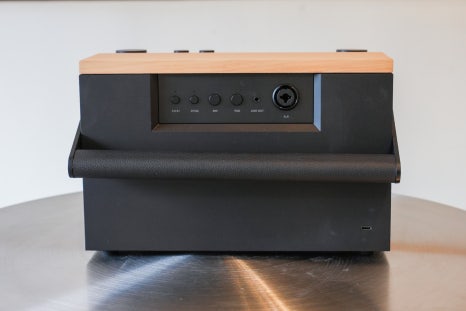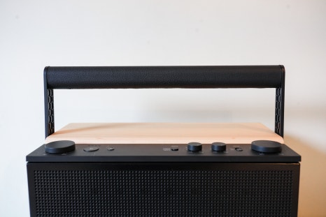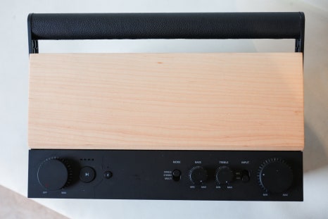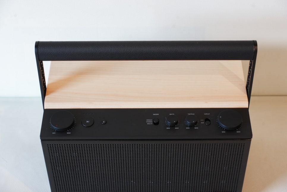 먼저 상단에는 스피커를 보다 편리하게 사용할 수 있도록 컨트롤 영역과 손잡이가 배치되어 있습니다.