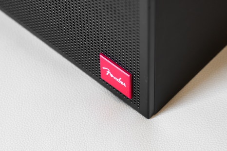 스피커 전면에는 Fender의 시그니처 레드 로고가 포인트로 자리 잡고 있어 멀리서도 브랜드 아이덴티티가 확실하게 느껴집니다.