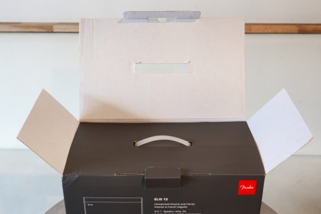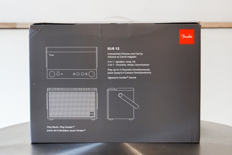 Fender ELIE 12의 패키지 박스는 제품 이미지를 중심으로 한 깔끔한 디자인으로 구성되어 있습니다.