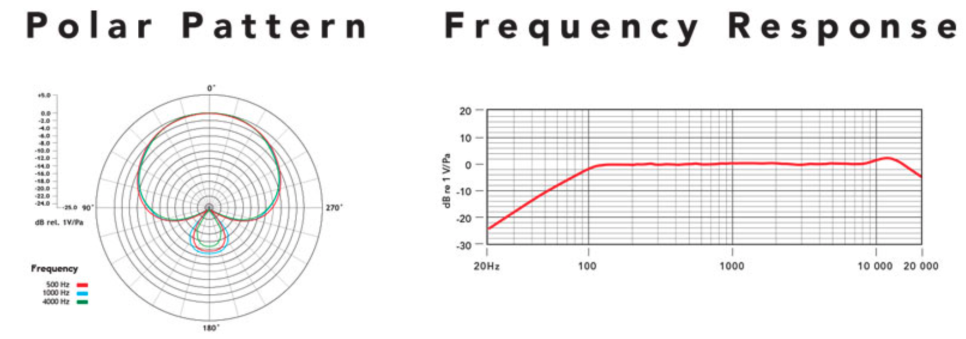 콘덴서 마이크임에도 141dB에 달하는 높은 최대 음압(SPL)을 견뎌내며, 감도는 6.31mV/Pa로, Sennheiser E965(7mV/Pa)와 유사한 수준이고 Beta 87A(2.4mV/Pa)를 크게 앞섭니다. 출력 임피던스가 50Ω이라 장거리 케이블 연결에서도 신호 손실에 강하고요.