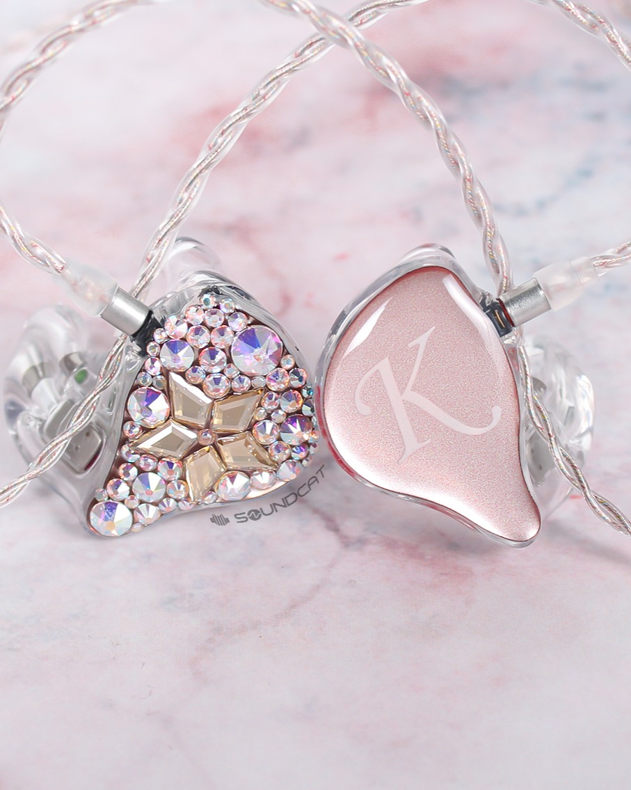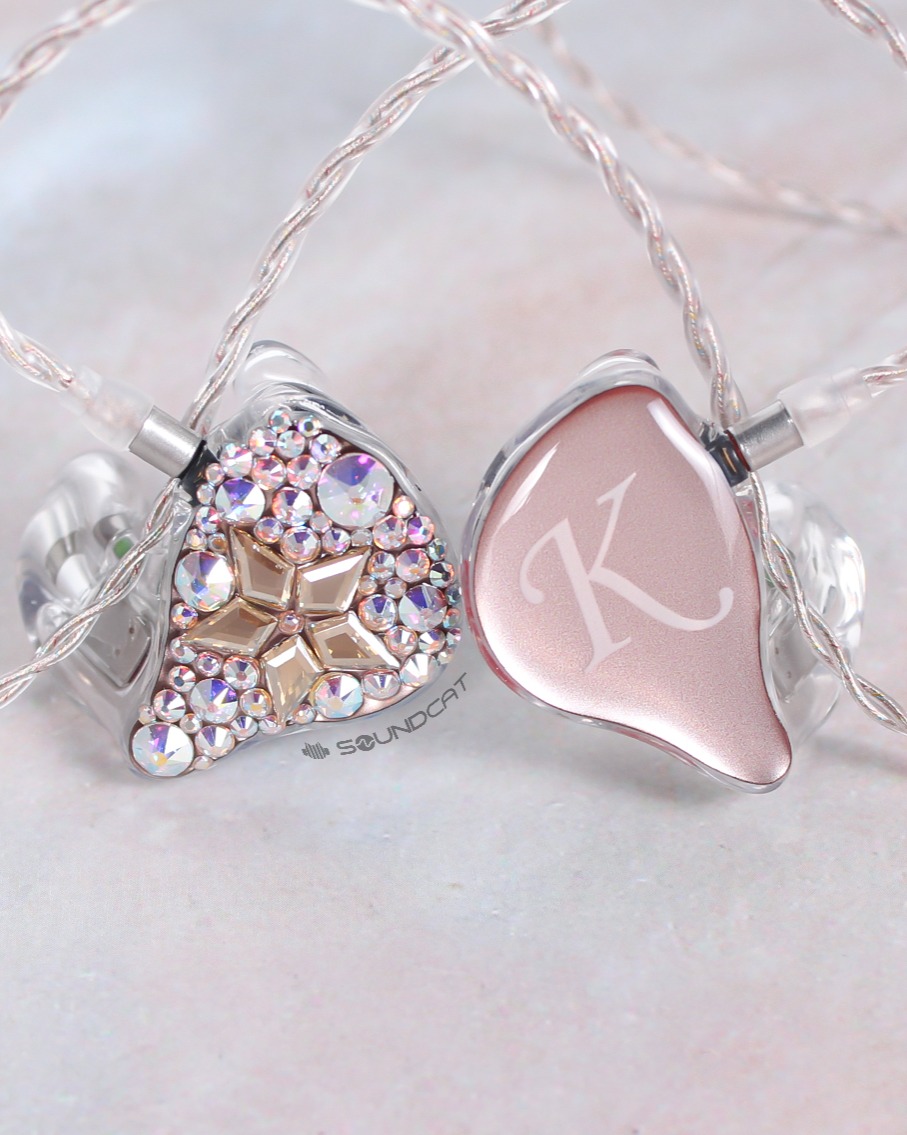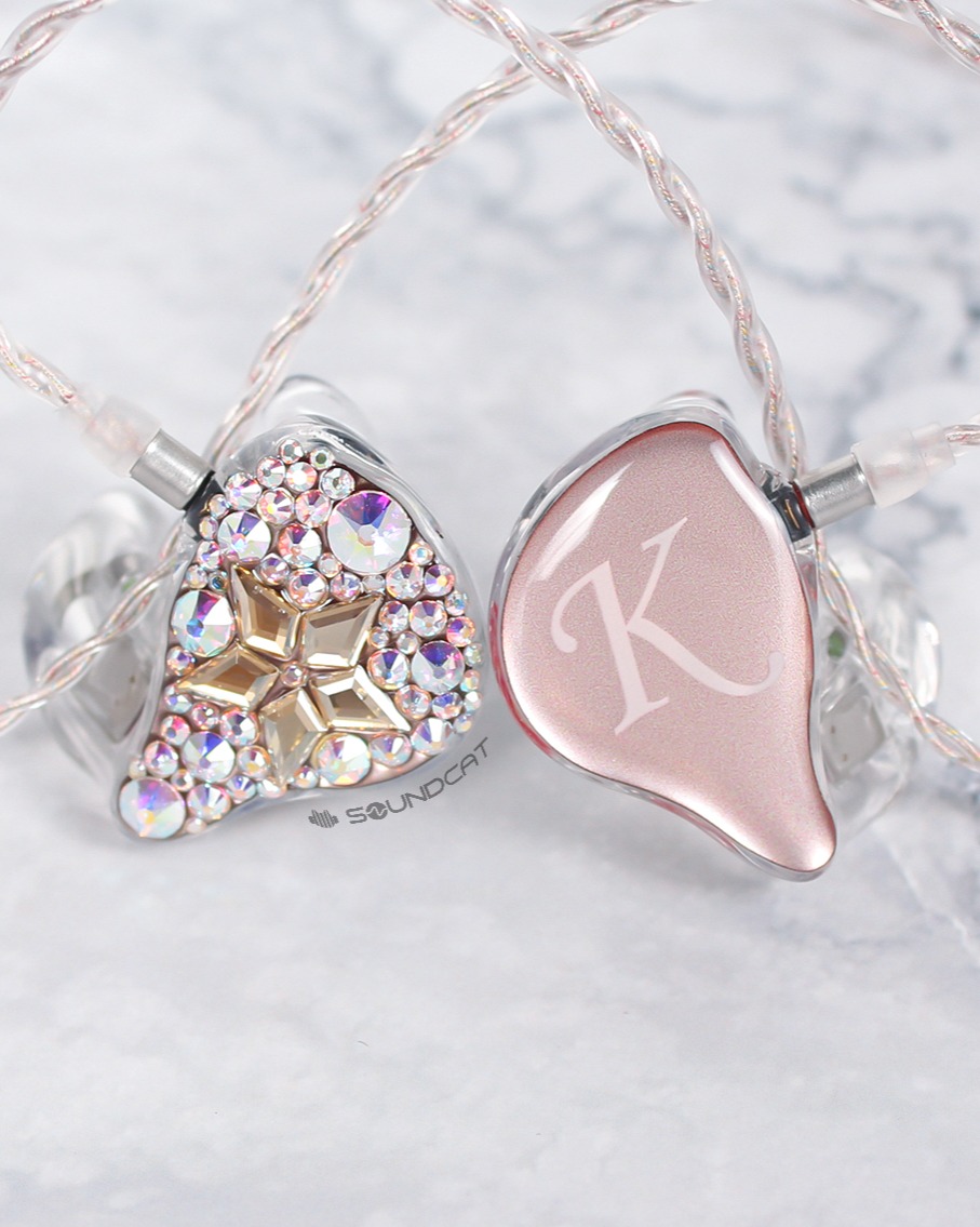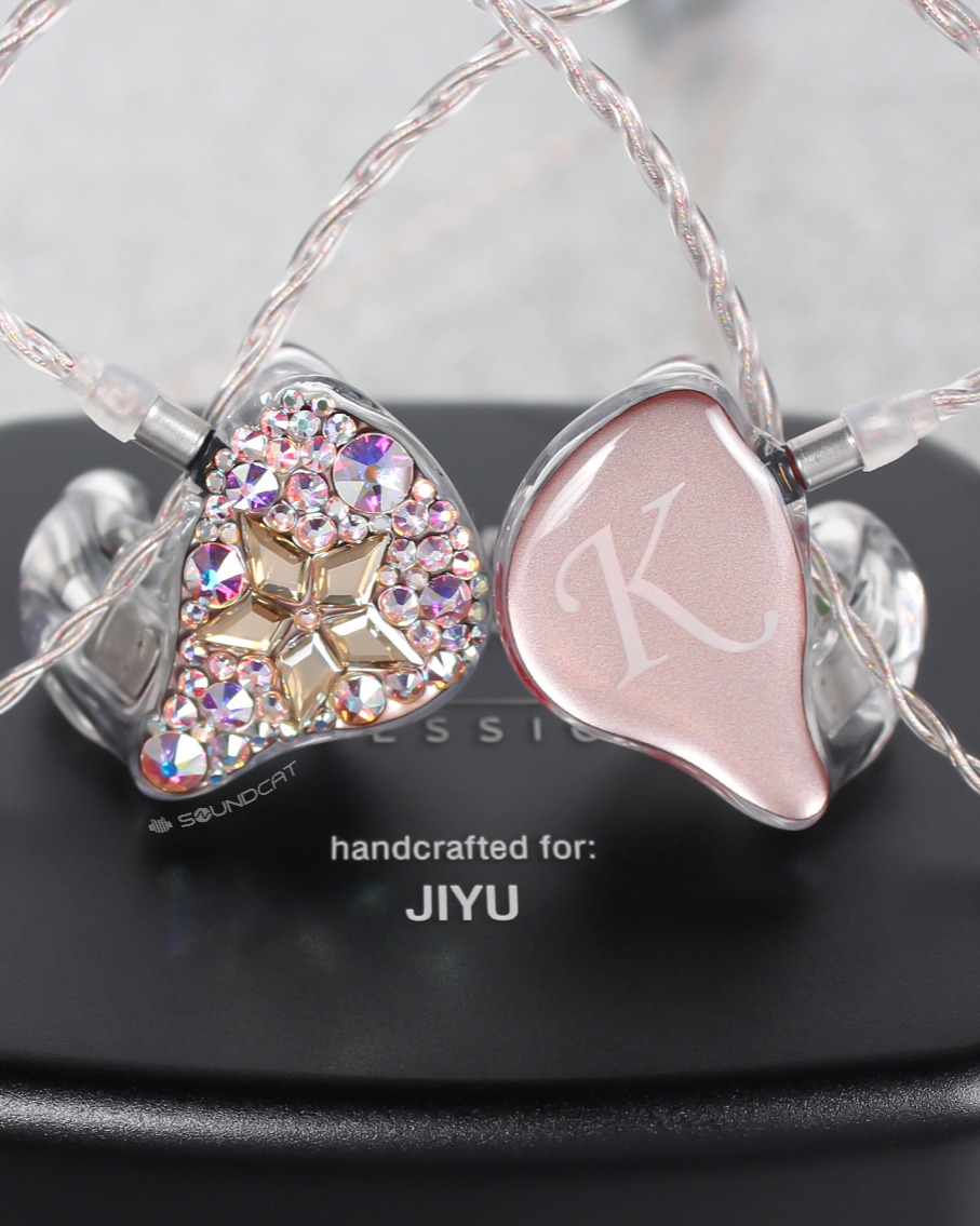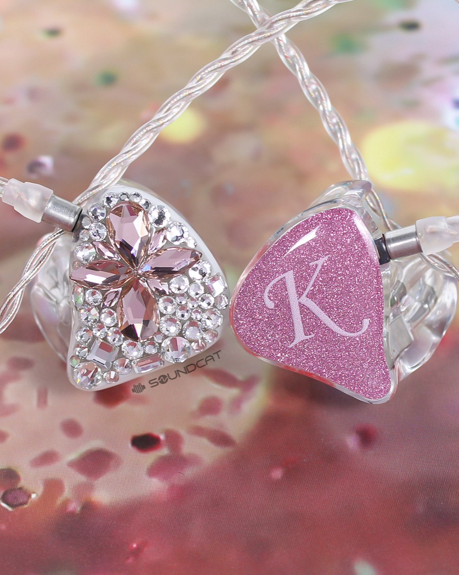 지유 (JIYU)님 커스텀: 투명한 쉘에 핑크빛 페이스 플레이트, 그리고 한쪽 유닛 전체를 덮은 영롱한 스톤 장식이 압권입니다.