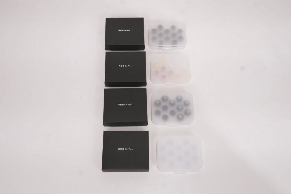 사용자의 취향과 이도 모양에 맞게 교체할 수 있는 총 4종류의 이어캡이 포함되어 있습니다.